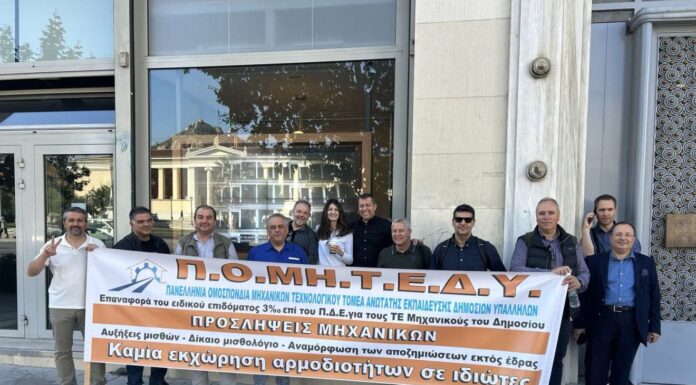 Την Πέμπτη 30 Οκτώβρη, 2025 οι Μηχανικοί του Δημοσίου έδωσαν δυναμικό «παρών»στη συγκέντρωση διαμαρτυρίας στο Γενικό Λογιστήριο του Κράτους, στο πλαίσιο της κοινήςκινητοποίησης που οργάνωσαν η Π.Ο.ΜΗ.Τ.Ε.Δ.Υ. και η Π.Ο. Ε.Μ.Δ.Υ.Δ.Α.Σ.